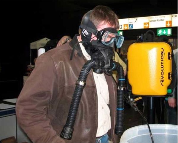 with the Draeger Dolphin rebreather as the mask would be blown off the