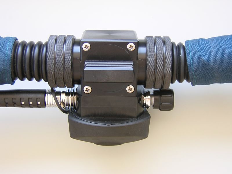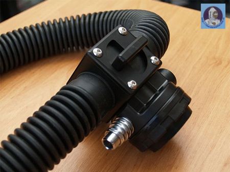 The mask can be equipped with Shark or Apeks second stage regulator.