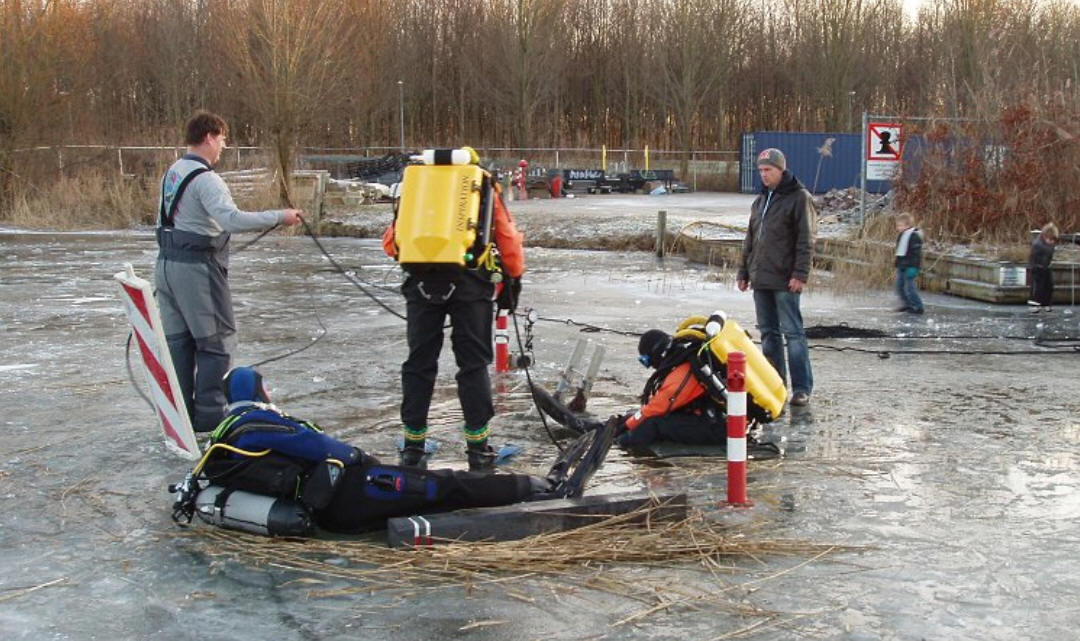 | Jan Willem Bech under the Ice using Inspiration rebreather |