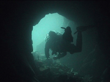 technical divers' doken naar het op 45 meter diepte gelegen wrak. Op deze