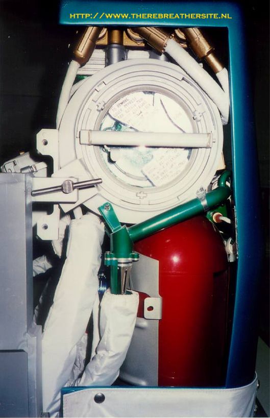 the suit. Oxygen, carbon dioxide and water vapour from breathing leave the
