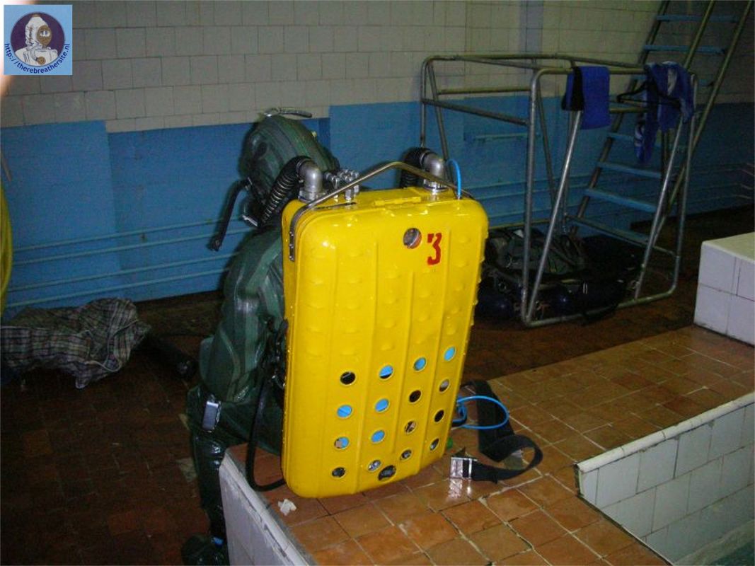 the oxygen bypass and air manometer on the right shoulder belt, and depth