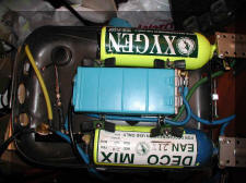 coded, green=oxygen, blue = diluent, yellow=bailout and black for anything