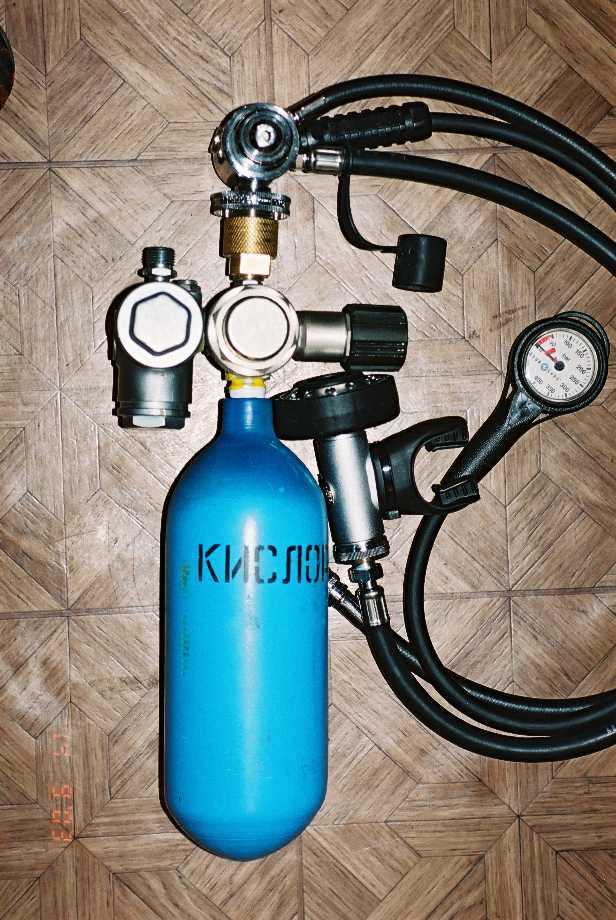 The Nitrox is carried in cylinders mounted on the BCD:
