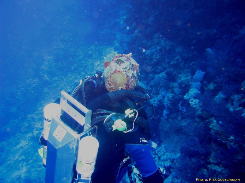 France, after 2 hours diving, max 82 mtr CC trimix dive, preparing for a beer ;)