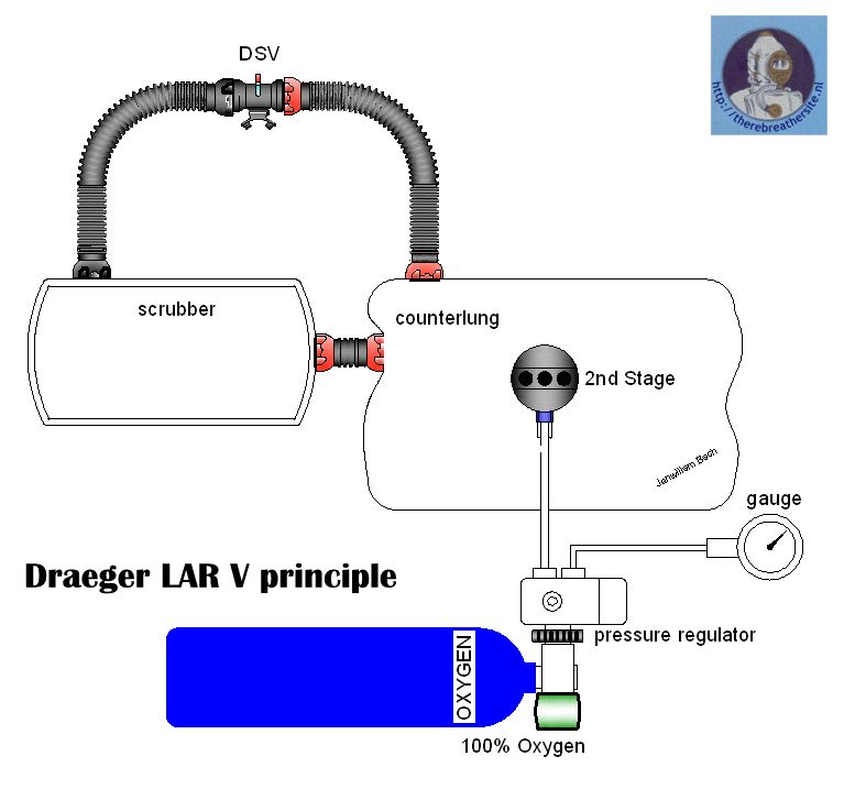 | Standard LAR V oxygen rebreather. No overpressure valve. | |||