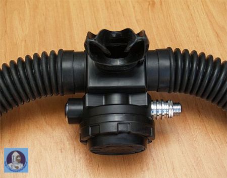 The mask can be equipped with Shark or Apeks second stage regulator.
