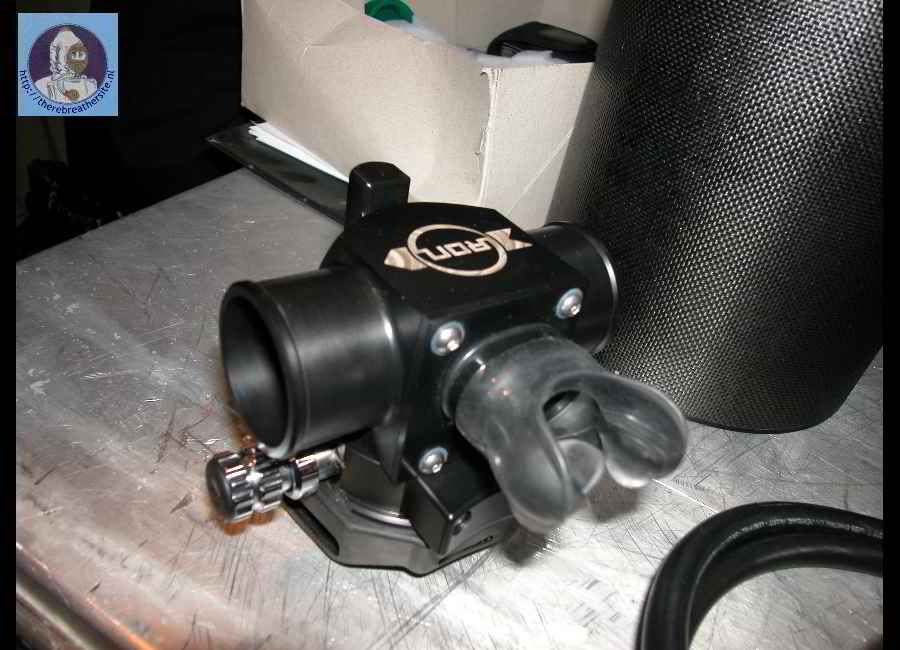 Here you see the Mask fitted to the Ouroboros rebreather with the Apeks TX