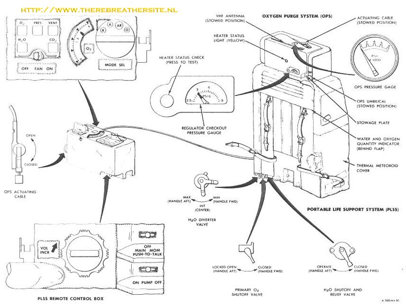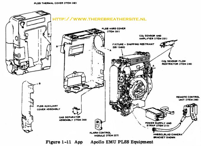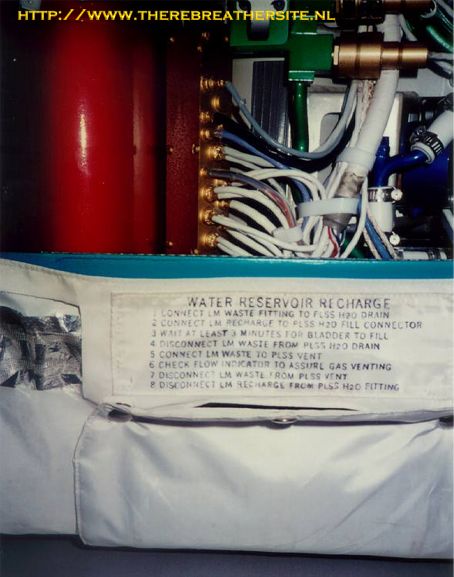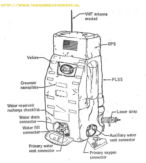 The PLSS includes oxygen bottles, water storage tanks, a