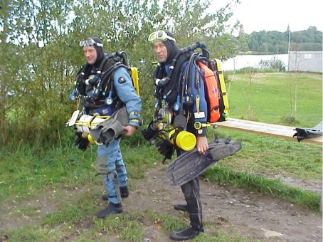 France, after 2 hours diving, max 82 mtr CC trimix dive, preparing for a beer ;)