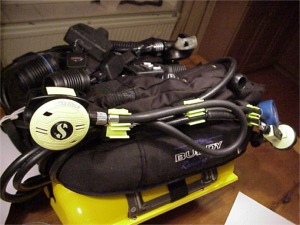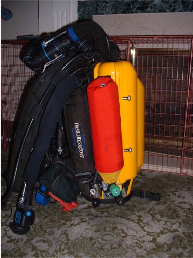 position, the O2 bailout regulator is clipped off to the D ring on the BC,